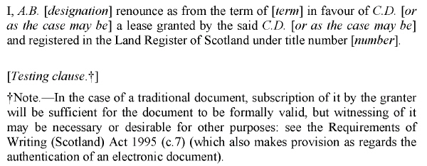 18SIn each of schedules (A.) (form of assignation of lease), (G.) (renunciation of lease) and (H.) (form of discharge of bond and assignation in security), in the note relating to subscription of the document in question—