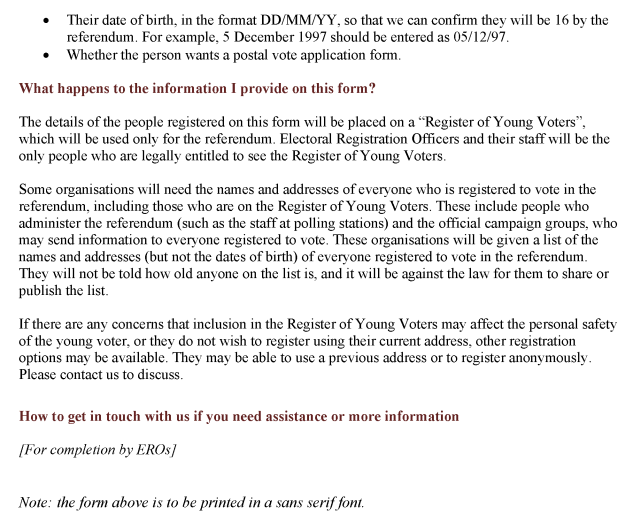 | Regulation 26 (applications for registration) | In paragraphs (1) to (3), the references to registration as a parliamentary or local government elector (or both) are to be read as references to registration in the register of young voters. |