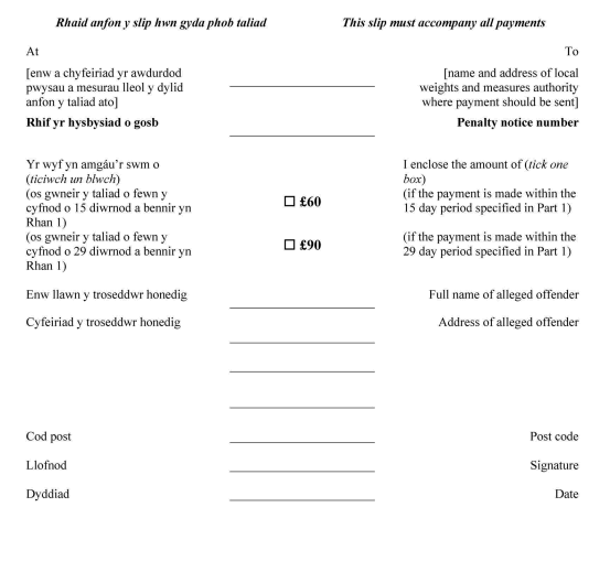 (2) A local weights and measures authority may use a penalty notice form in a size or design which differs from the form specified in the Schedule, provided that the content of the penalty notice form is not changed from that specified in the Schedule except as permitted by paragraph (3).