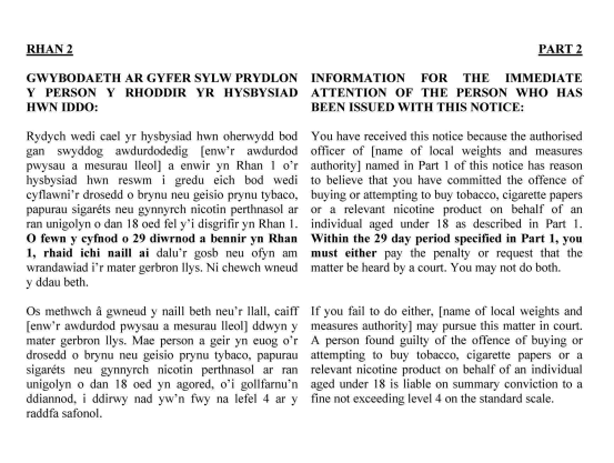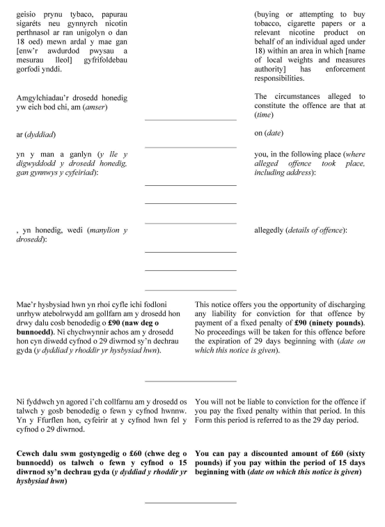 The Proxy Purchasing of Tobacco, Nicotine Products etc. (Fixed Penalty Notice) (Wales) Regulations 2015